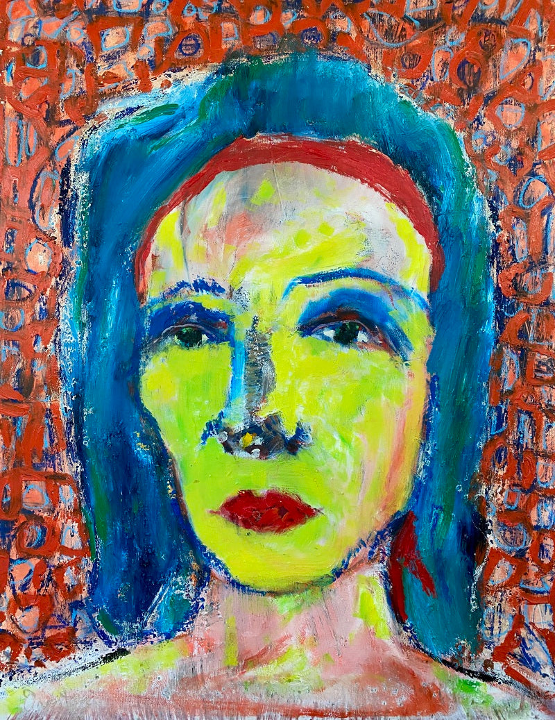 She's painted with raw pigment and oils, tubed oils and oil crayon on canvas. The colors in this piece conjure the music of a wandering explorer who has covered enough ground to tell you about distant lands where nobody's been.
