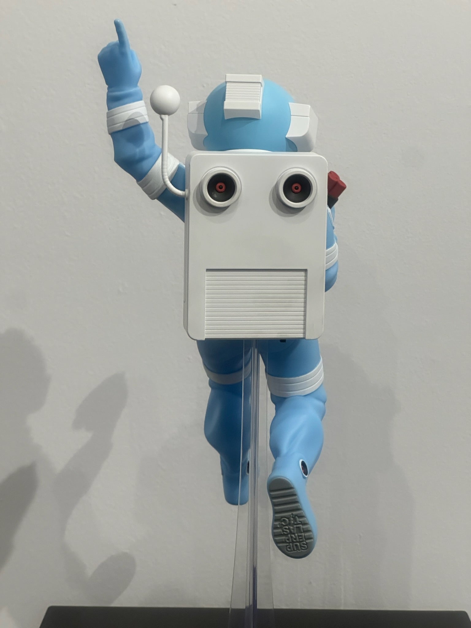 Soft vinyl with smooth matte finish and translucent components. Superplastic in collaboration with Gorillaz, inspired by the “Strange Timez” episode.